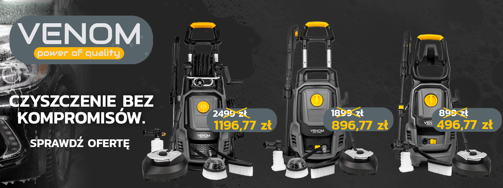 W tej kategorii znajdziesz wysokiej klasy myjki ciśnieniowe do użytku domowego i półprofesjonalnego, idealne do czyszczenia samochodów, elewacji, podjazdów, tarasów, mebli ogrodowych i innych trudnych powierzchni. Oferujemy urządzenia polskiej marki VENOM, które charakteryzują się solidną konstrukcją, aluminiową pompą, wysokim ciśnieniem roboczym (do 360 bar) oraz zestawem profesjonalnych akcesoriów.