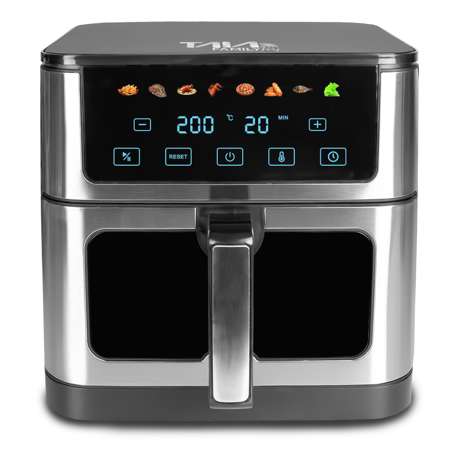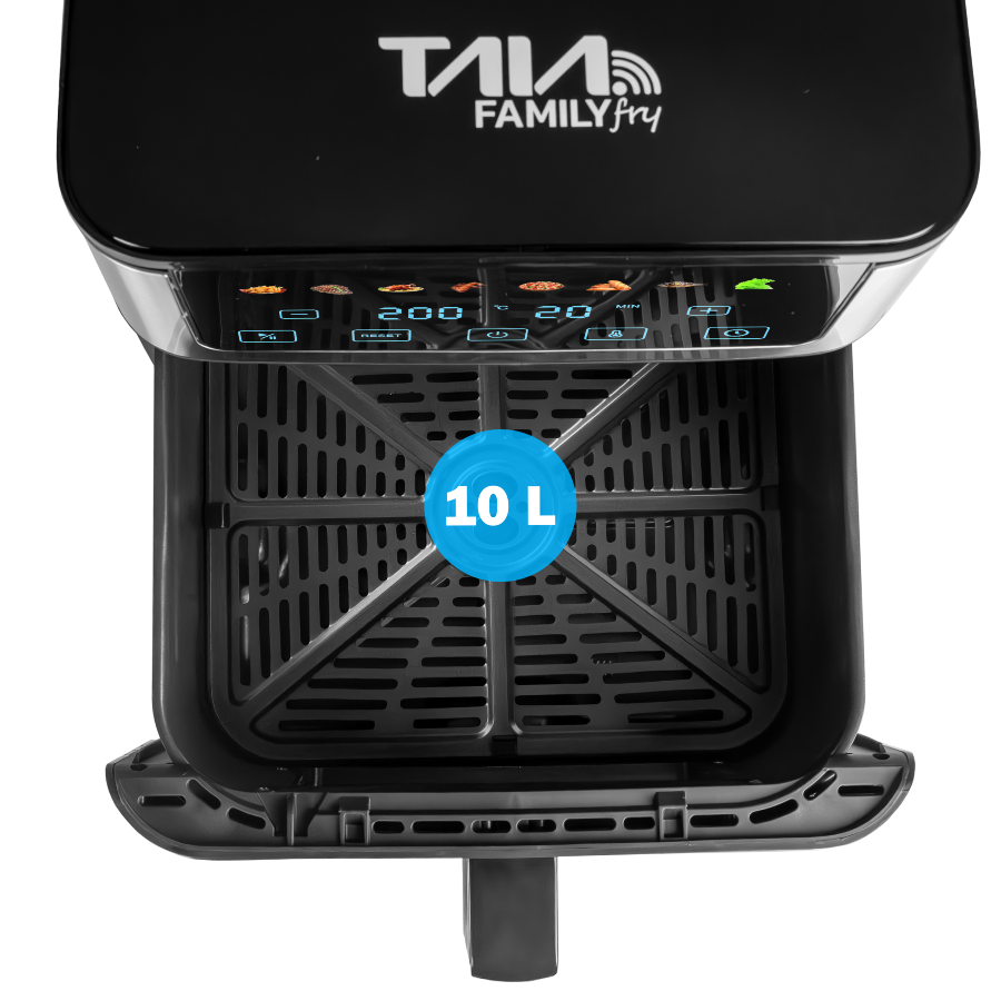 Model Family Fry to największa frytkownica beztłuszczowa w ofercie TAIA, stworzona z myślą o rodzinach i wspólnym gotowaniu. Dzięki ogromnej pojemności 10 litrów, inteligentnym programom i sterowaniu przez aplikację TUYA przygotujesz zdrowe, chrupiące posiłki dla nawet 8–11 osób – szybko, wygodnie i bez oleju.