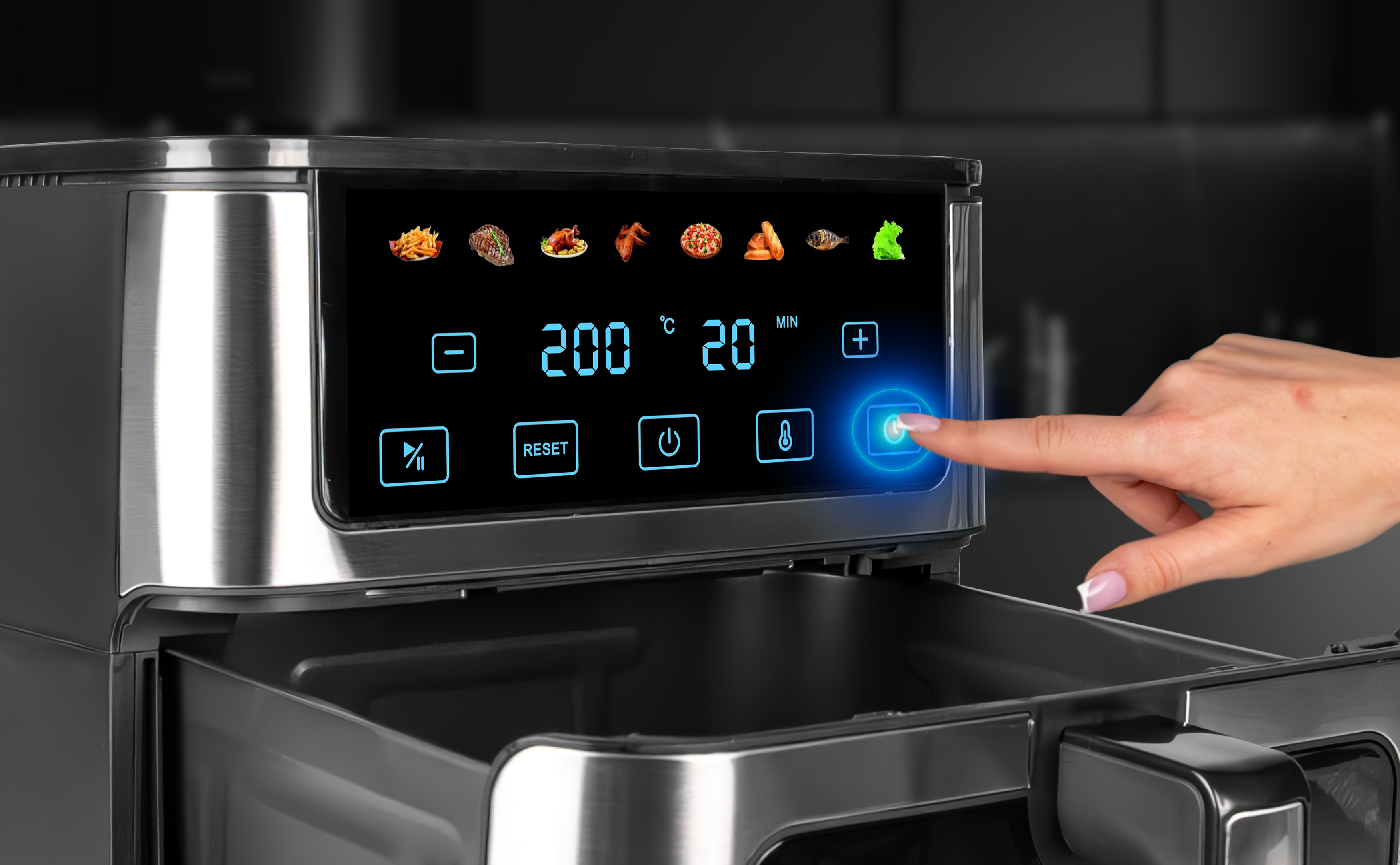 Frytki, kurczak, pizza, warzywa, ciasta czy mrożonki – każdy program ustawia czas i temperaturę za Ciebie.