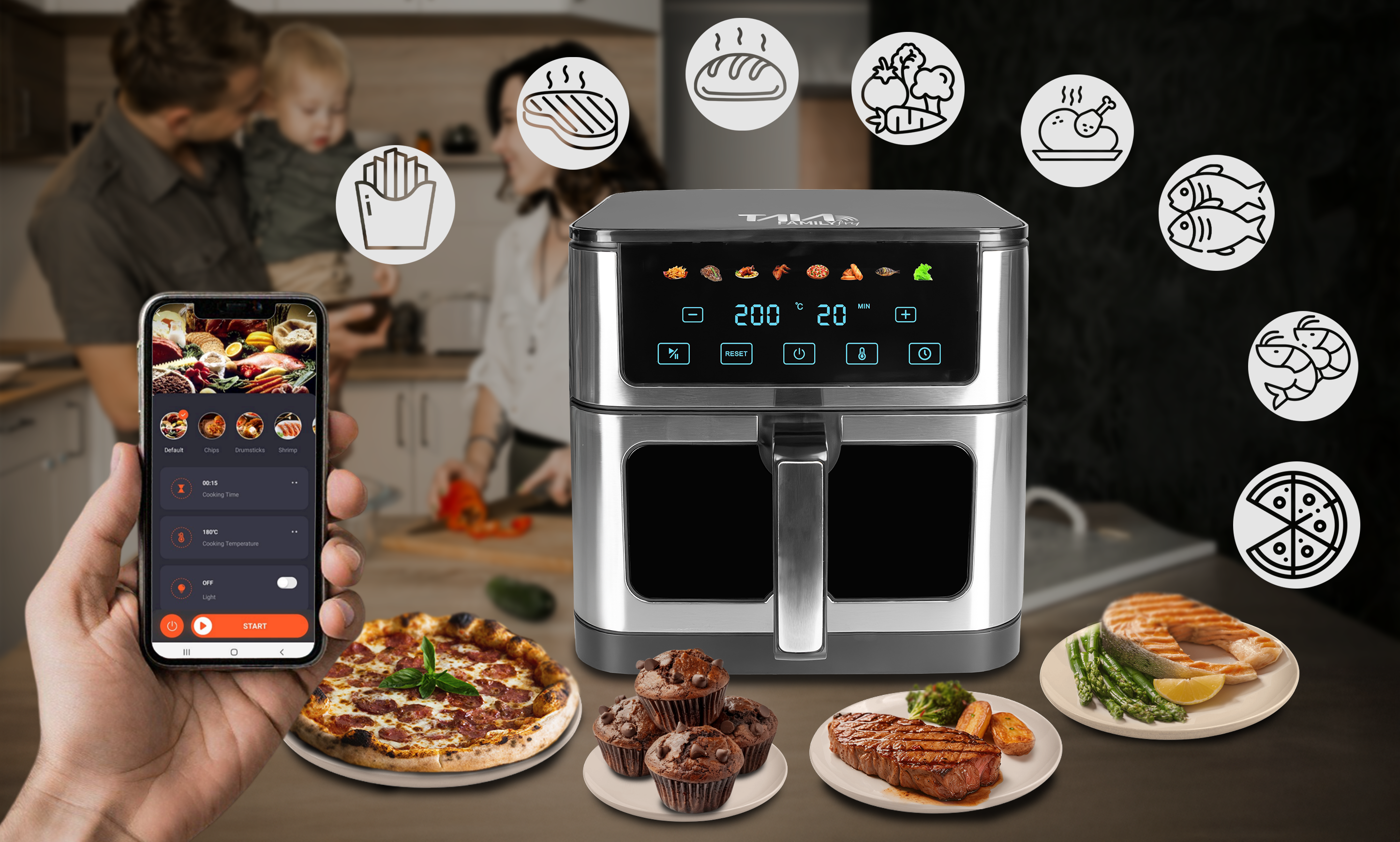 TAIA Family Fry Wi-Fi to coś więcej niż frytkownica. W jednym urządzeniu możesz przygotować: