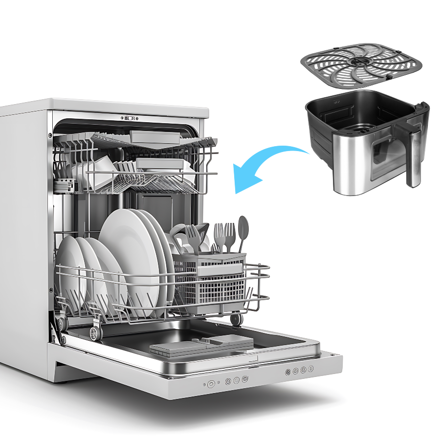 Łatwe czyszczenie, brak przywierania – kosz i tackę można myć w zmywarce.