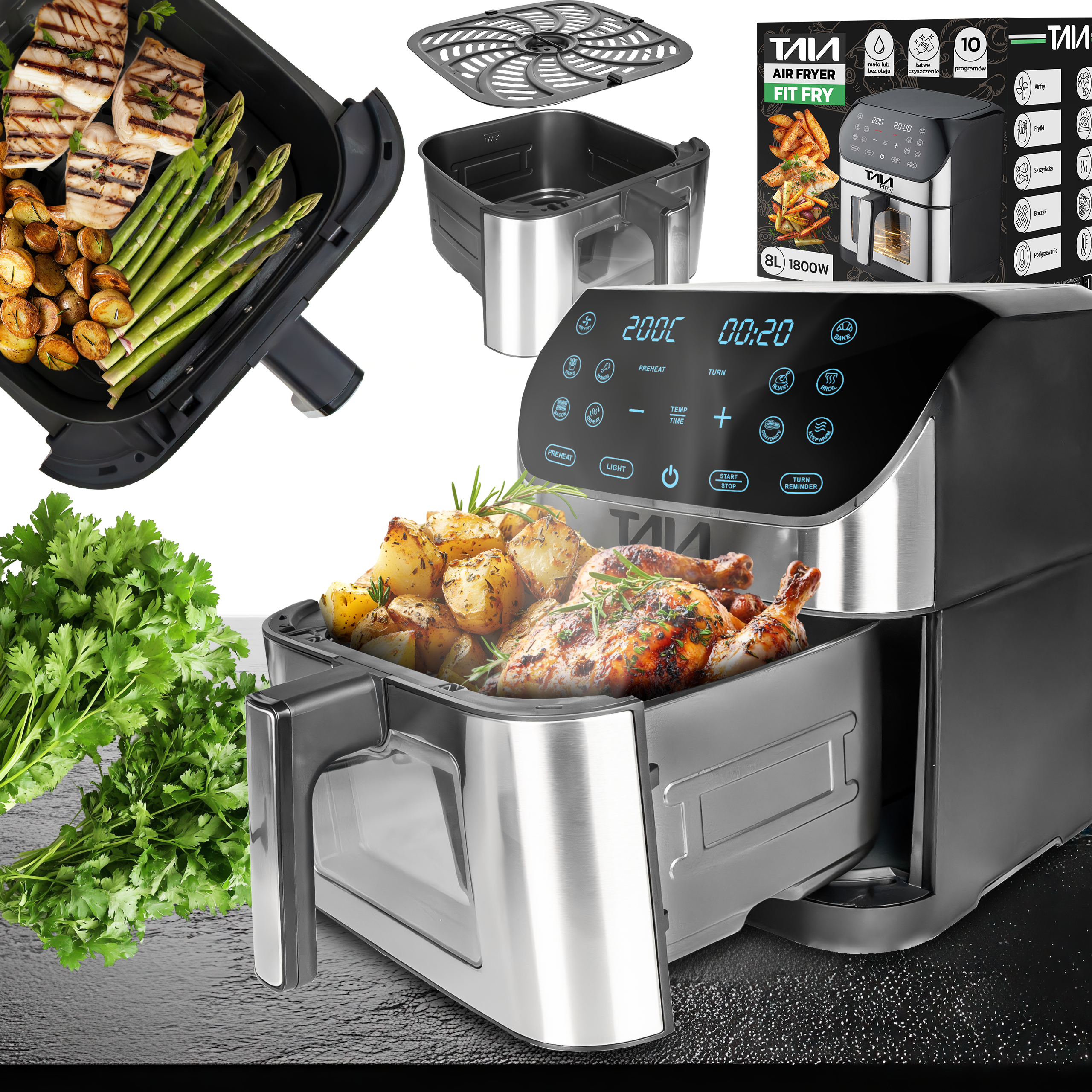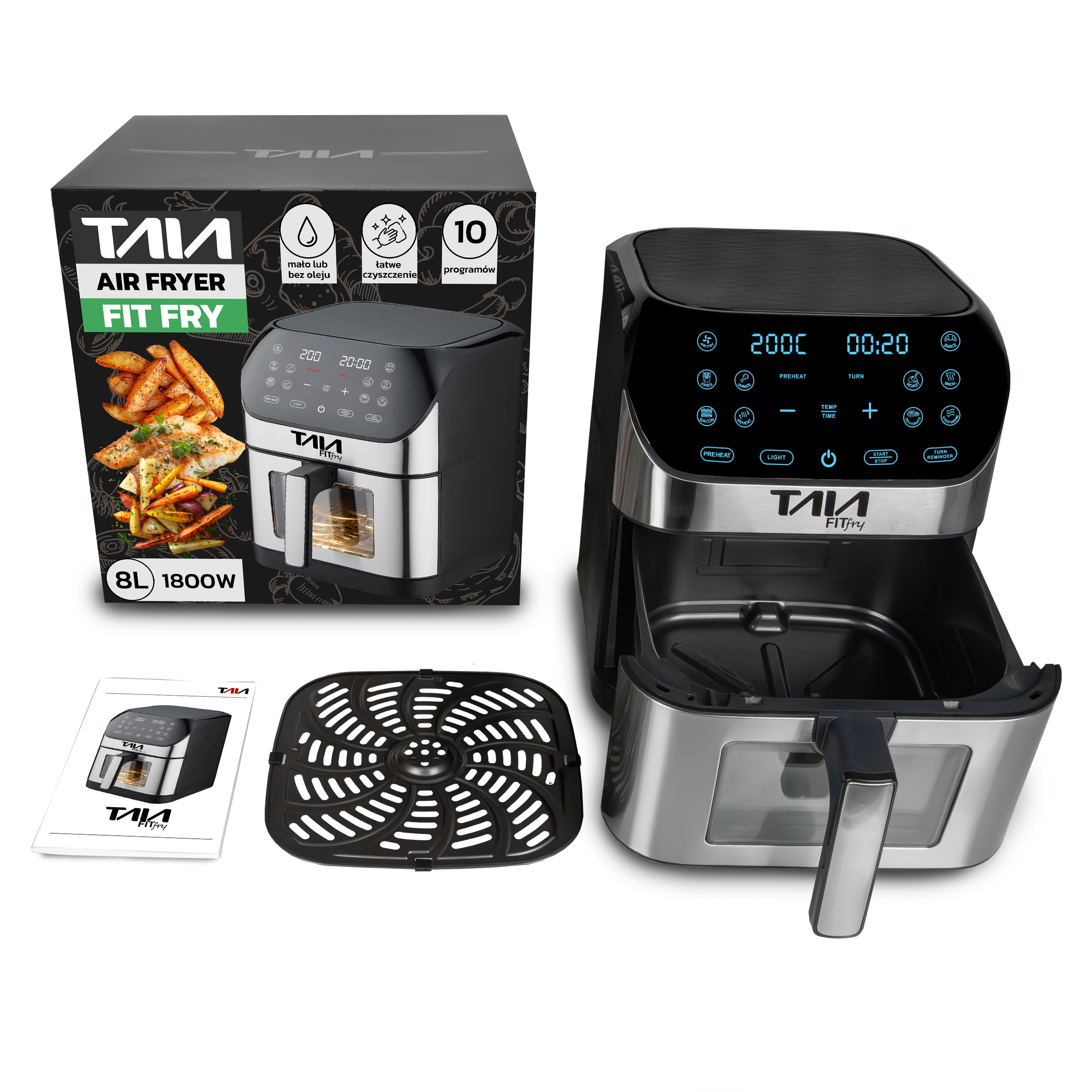 Frytkownica Beztłuszczowa Air Fryer TAIA Fit Fry 8L Panel LED z oknem podglądu, 10 programów, zdrowa kuchnia 1800W