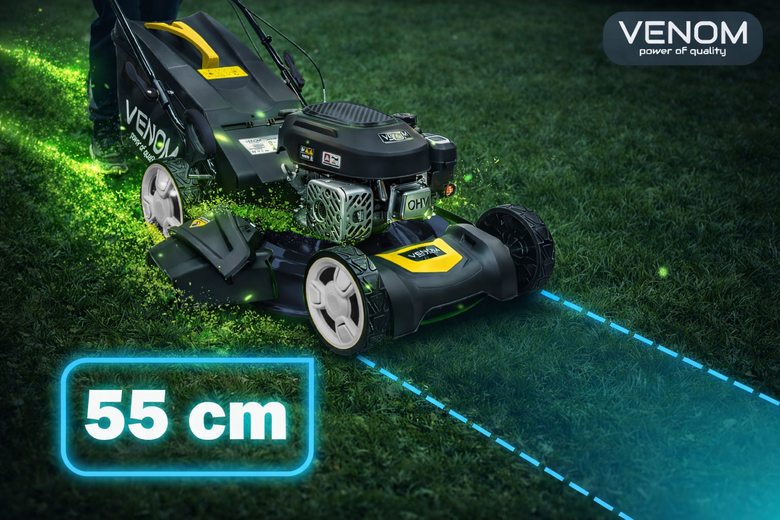 VENOM 55S-209 Nowoczesna Kosiarka Spalinowa / Silnik Venom 209CC / Mulczowanie / Wyrzut Boczny / System Łatwego Rozruchu