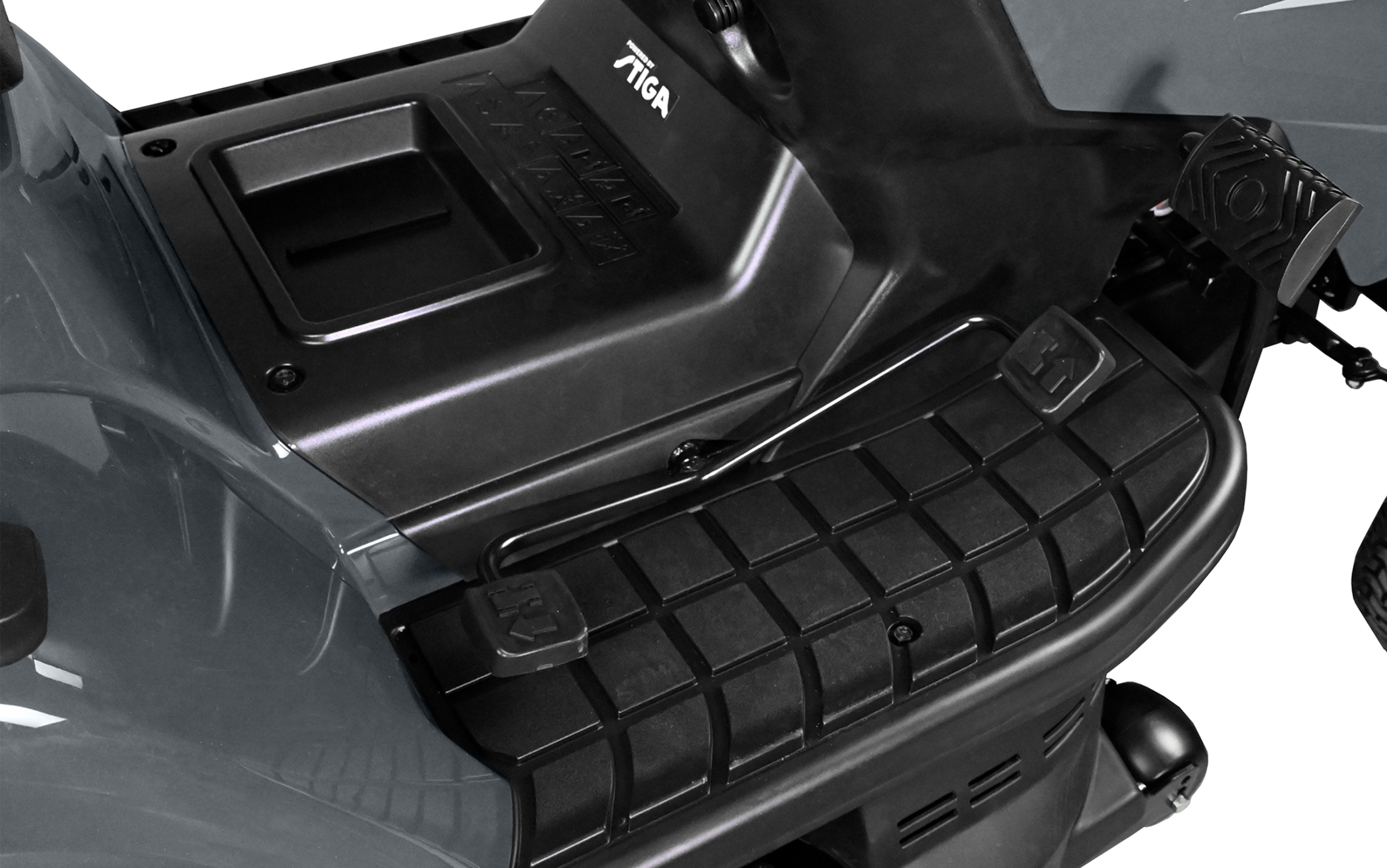 Traktorek VENOM by Stiga został wyposażony w wygodny, dobrze wyprofilowany fotel ComfortRide Seat™ oraz lekki układ kierowniczy, które zapewniają pełną kontrolę nad maszyną i komfort pracy nawet podczas długotrwałego koszenia.
