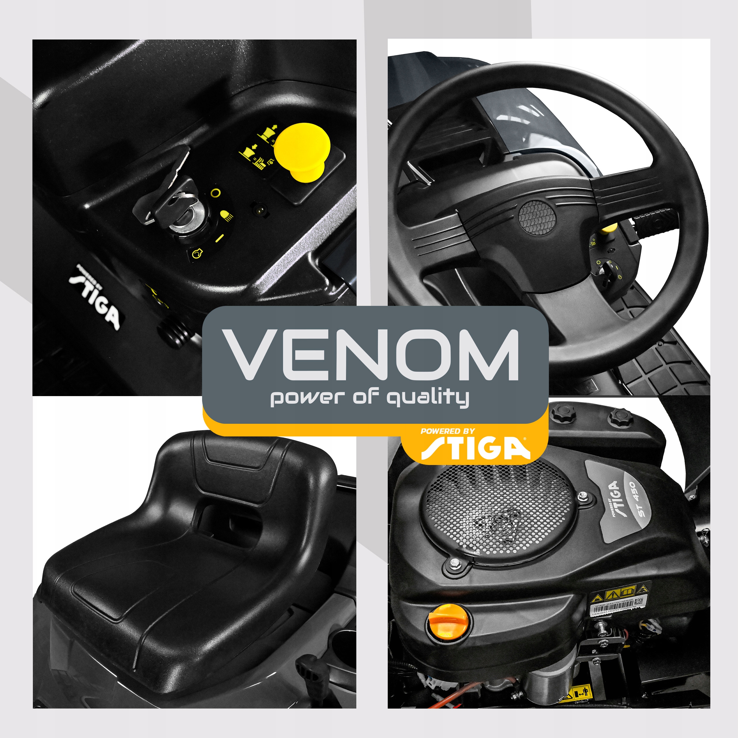 Profesjonalne traktorki ogrodowe polskiej marki VENOM w kolaboracji ze szwedzką precyzją marki STIGA – z pełnym dostępem do serwisu, części i oryginalnych akcesoriów.