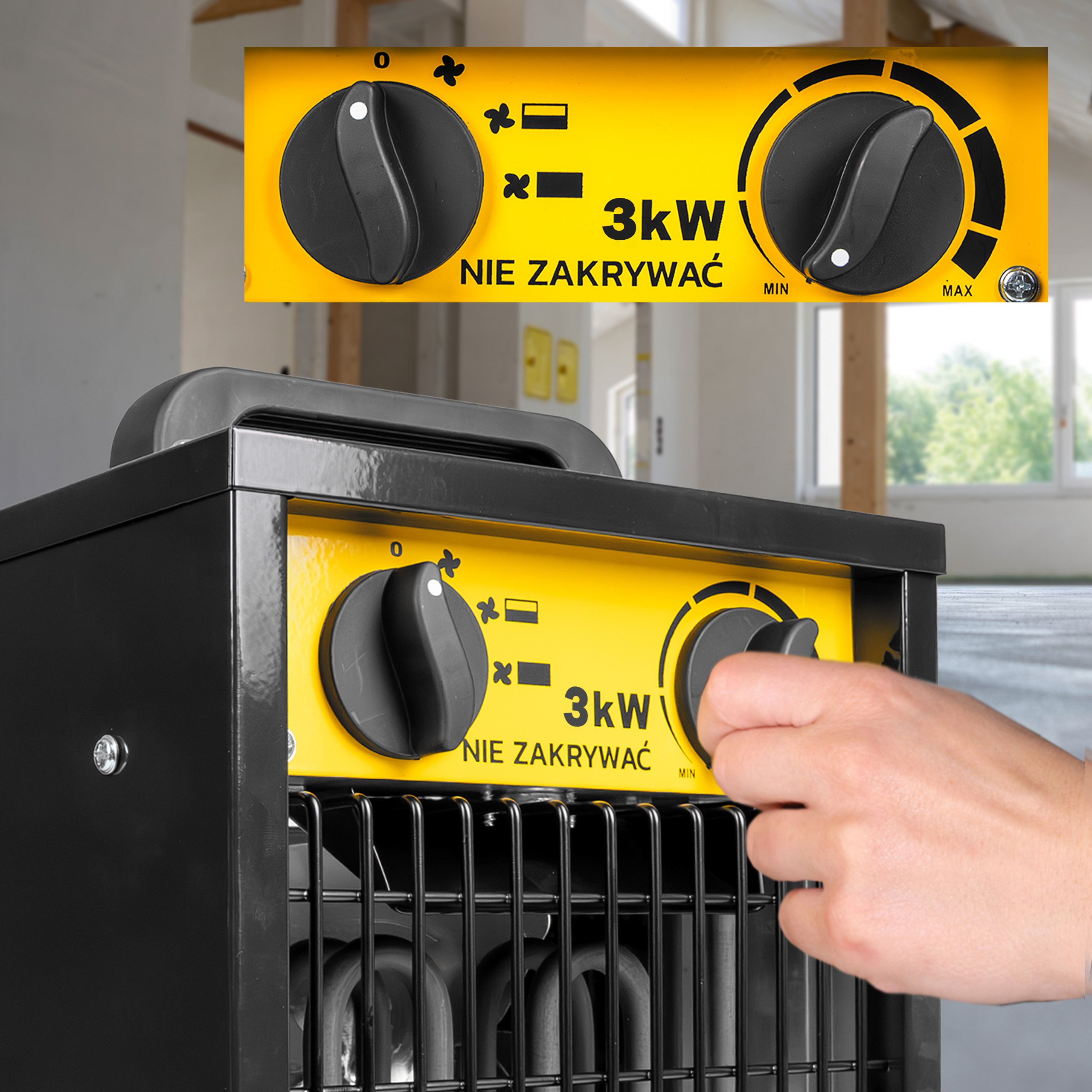 Dzięki takiemu rozwiązaniu obsługa nagrzewnicy jest wyjątkowo prosta, a komfort użytkowania maksymalny – niezależnie od tego, czy używasz urządzenia w domu, garażu, czy w warsztacie.