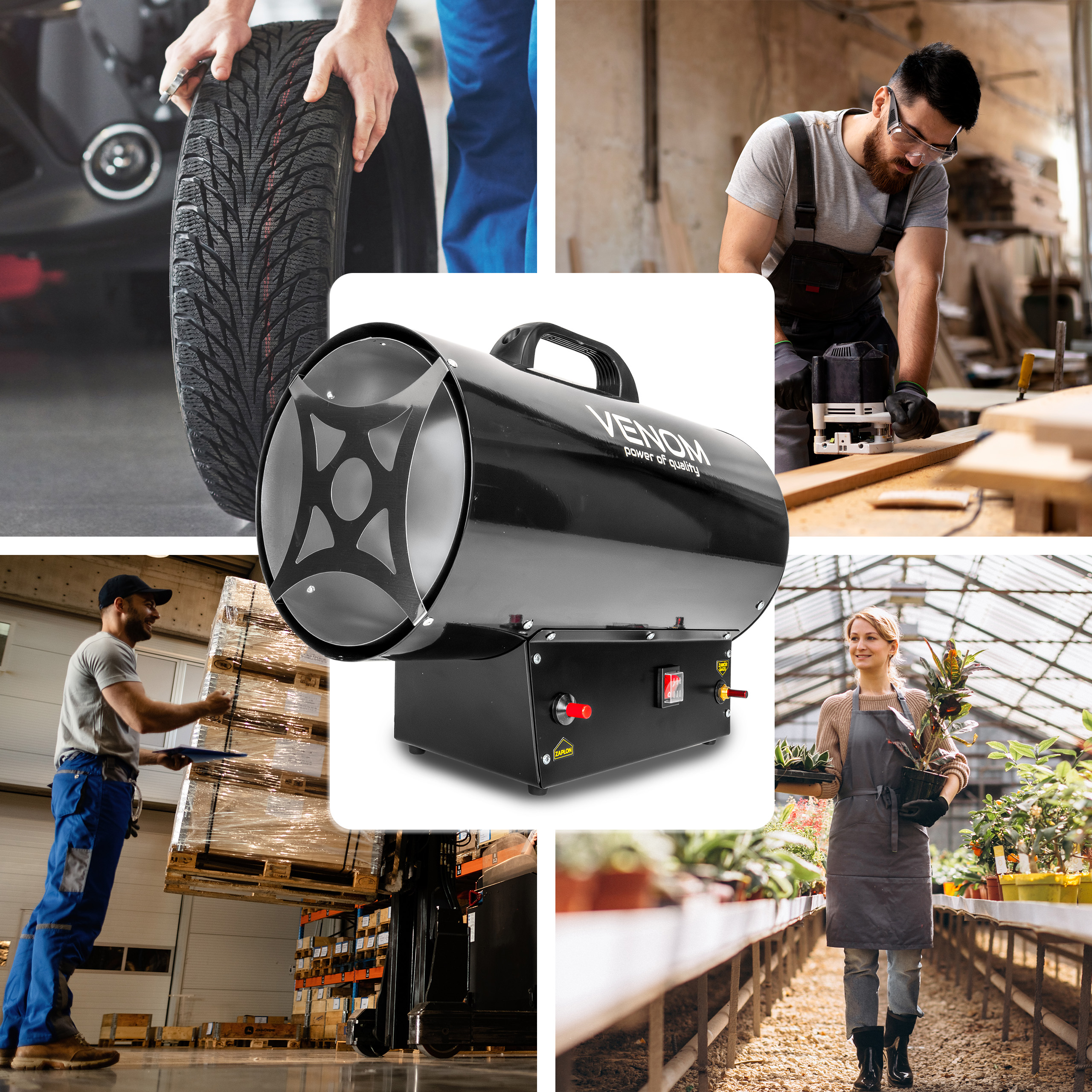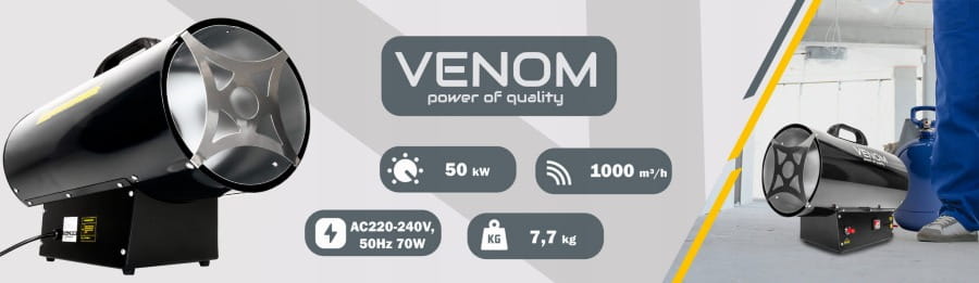 Marka VENOM to specjalizacja w produkcji profesjonalnego sprzętu grzewczego, stworzonego do najbardziej wymagających zadań w przemyśle, budownictwie i warsztatach.