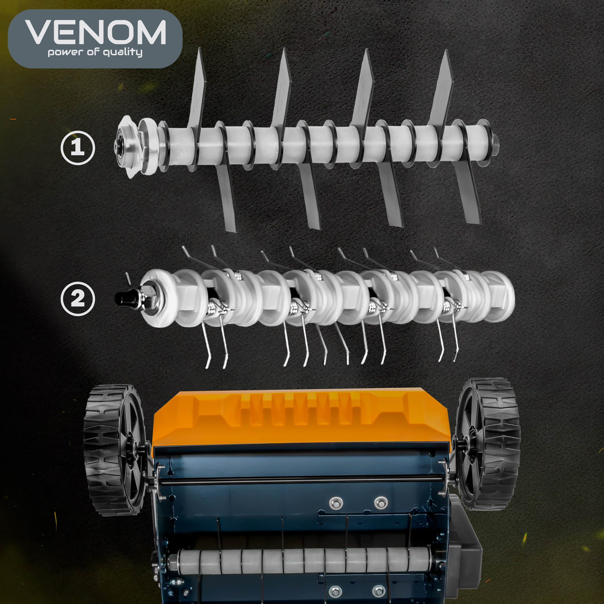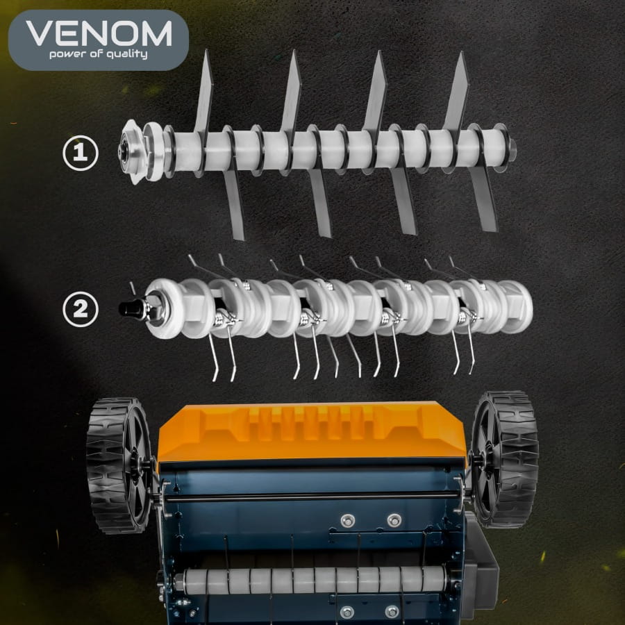 VENOM to polska marka, która łączy realne parametry, ergonomię, trwałość i funkcjonalność 10w1 w jednym, bezkonkurencyjnym wertykulatorze. To sprzęt zaprojektowany dla wymagających użytkowników