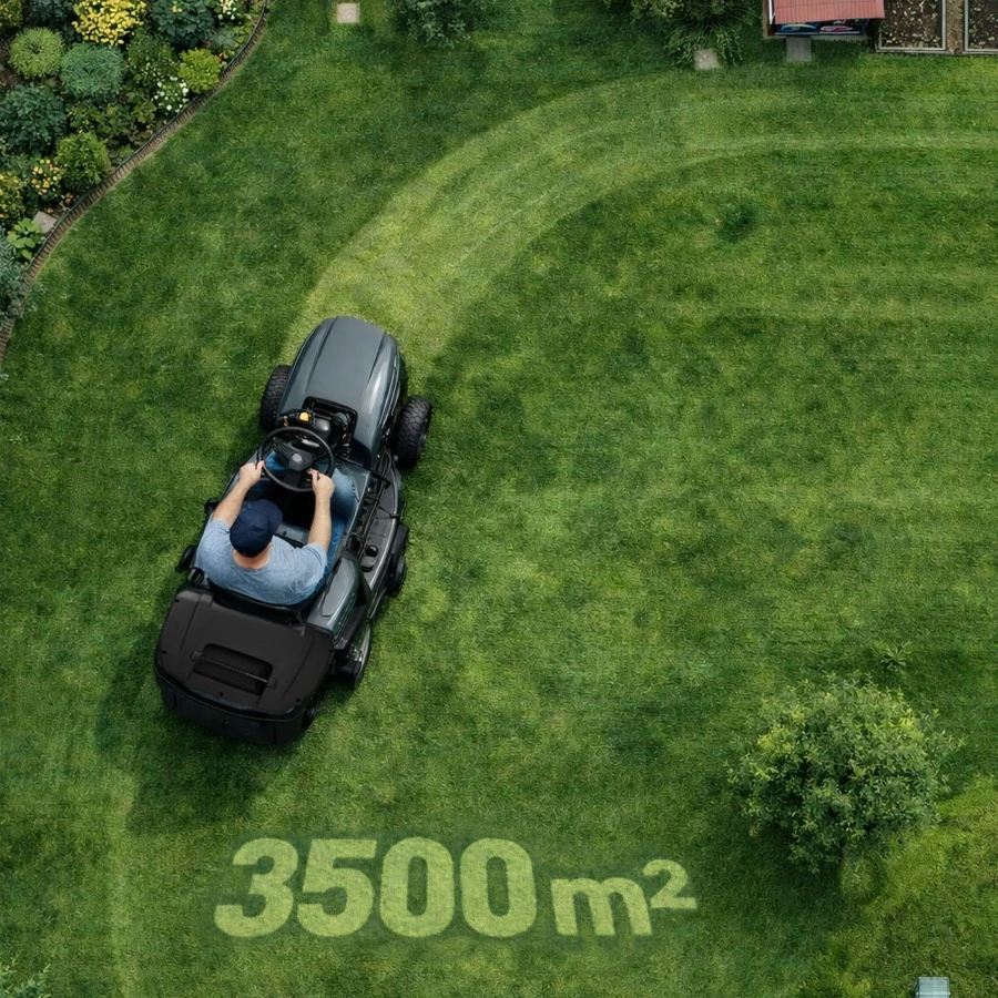 Traktorek został zaprojektowany z myślą o wydajnej pracy na większych terenach, dzięki czemu doskonale sprawdzi się na działkach o powierzchni koło 3000 m² do nawet 3500 m².